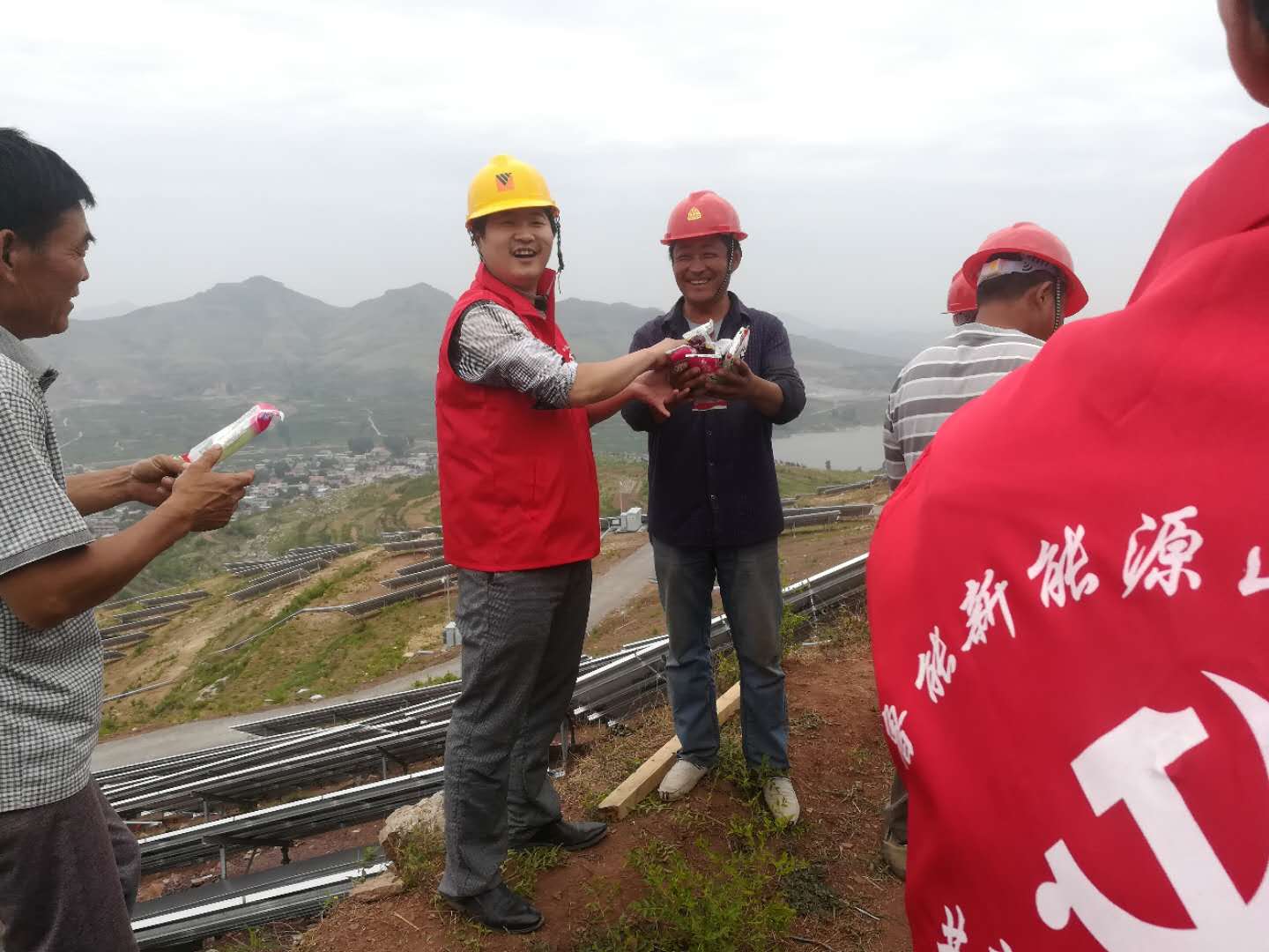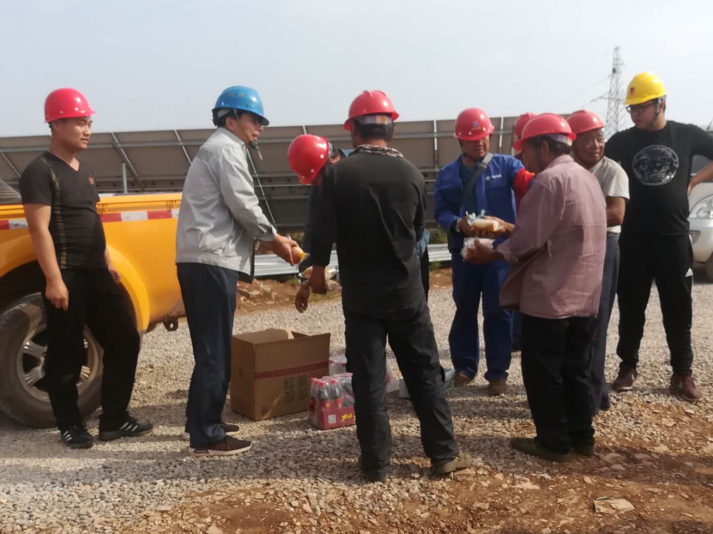 公司山亭50MW光伏發(fā)電項(xiàng)目工地施工中,業(yè)主魯能新能源棗莊公司、總包寧夏電建公司的相關(guān)管理人員慰問(wèn)奮斗在一線的員工。