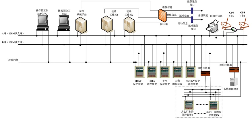 站控制層包括主機(jī)/操作員工作站、遠(yuǎn)動工作站、保信系統(tǒng)子站、微機(jī)五防工作站、網(wǎng)絡(luò)交換機(jī)、打印機(jī)、GPS對時系統(tǒng)等為全所設(shè)備監(jiān)視、測量、控制、管理的中心,通過網(wǎng)絡(luò),接收保護(hù)裝置信息、現(xiàn)場采集的數(shù)字量、模擬量信息,以及向現(xiàn)場發(fā)布控制命令,并與遠(yuǎn)方控制中心進(jìn)行遠(yuǎn)方數(shù)據(jù)通訊。操作員站和數(shù)據(jù)處理及通信單元均直接與測控單元(含測控保護(hù)單元)通信,當(dāng)數(shù)據(jù)處理及通信裝置故障時,不影響操作員站的正常運(yùn)行功能。